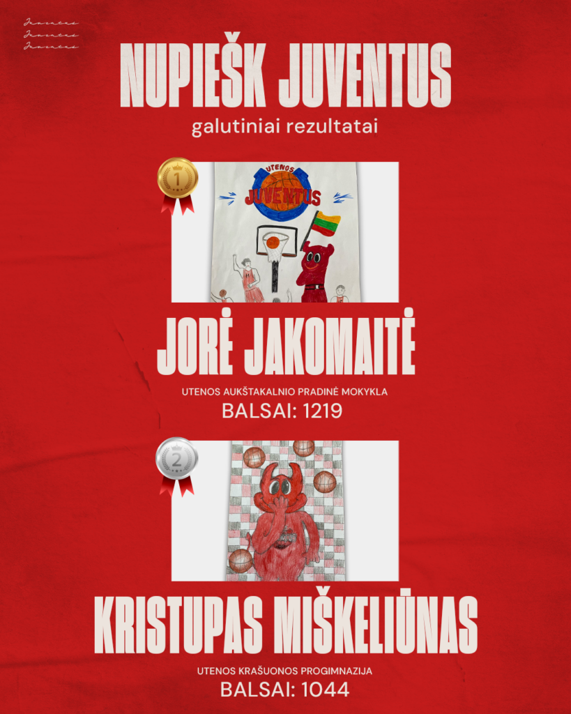 Pirmąją vietą, surinkusi daugiau nei 1200 balsų, iškovojo Utenos Aukštakalnio pradinės mokyklos mokinė Jorė Jakomaitė. Pagrindinis konkurso prizas – kelionė į Utenos „Juventus“ išvykos rungtynes – atiteks ne tik laureatei, bet ir visai jos klasei.